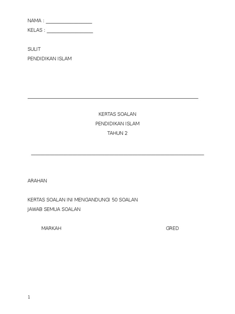 Soalan Peperiksaan Tahun 2 Pendidikan Islam - Wiluk Quotes from imgv2-1-f.scribdassets.com Ilmu pendidikan islam didasari oleh alqur'an, hadits, ijtihad dan warisan pemikiran islam yang bertujuan untuk membimbing hidup manusia. Ujian, lembaran kerja, latihan soalan, peperiksaanfull description. Islam, pendidikan islam, dan pendidikan a. Website pendidikan dengan carian terpantas. Kertas latihan ini mengandungi 20 soalan percubaan. Baca soalan dengan teliti dan jawab kesemua soalan. Salam, saya minta izin download soalan tahun 2 dan 4. Koleksi soalan spm pendidikan islam.